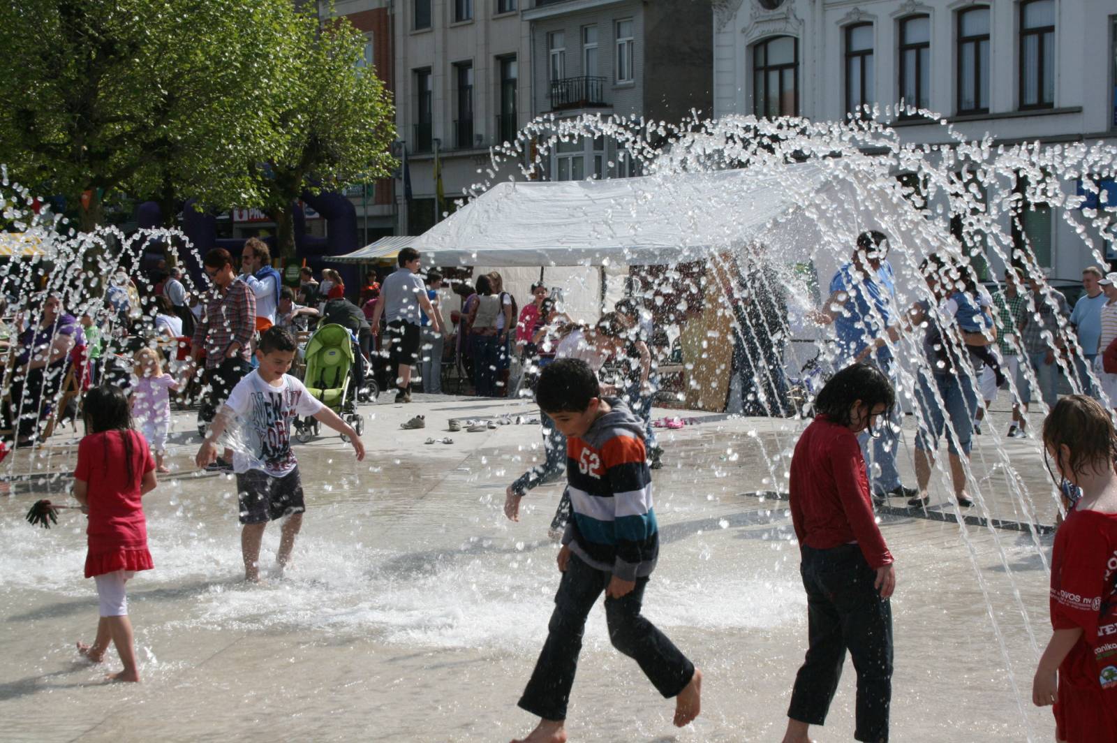 Spektakel op de vernieuwde markt .